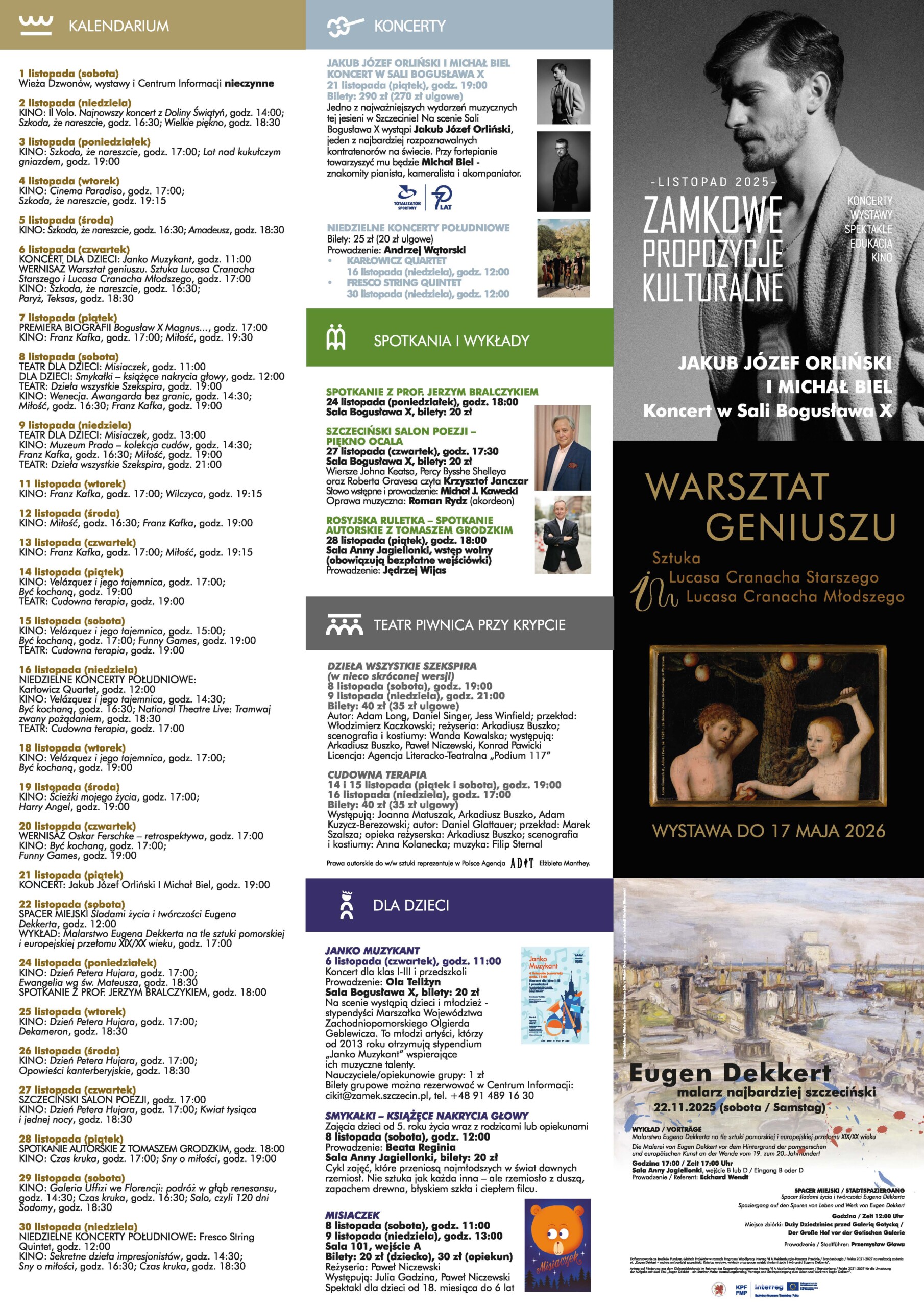Przedstawiamy program wydarzeń w Zamku Książąt Pomorskich w Szczecinie na listopad 2025.