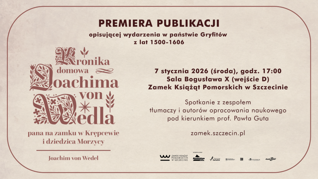 PREMIERA POLSKIEGO PRZEKŁADU „KRONIKI DOMOWEJ JOACHIMA VON WEDLA PANA NA ZAMKU W KRĘPCEWIE I DZIEDZICA MORZYCY” OPISUJĄCEJ WYDARZENIA W PAŃSTWIE GRYFITÓW Z LAT 1500-1606